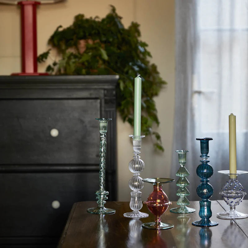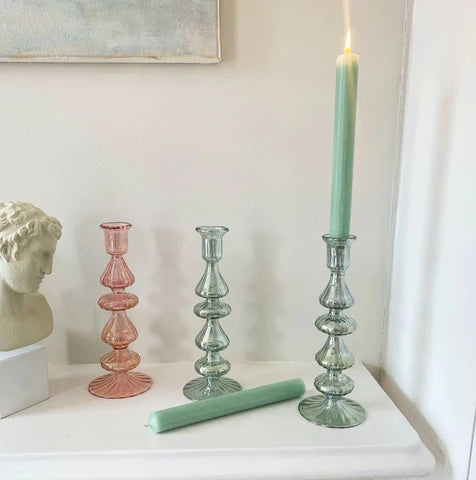These holders invite you to experiment with color and style, offering the freedom to mix and match for a bold, bohemian aesthetic. Crafted with meticulous care, these candle holders are hand-spun, resulting in subtle variations in diameter and depth - a delightful reminder that each piece is unique and unmatched.