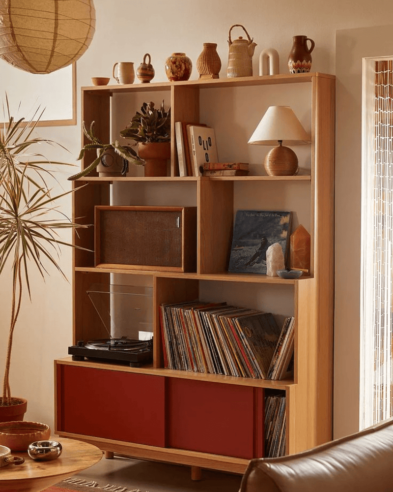 Shelves provide a natural area for a grid, creating an eye-catching guide.
