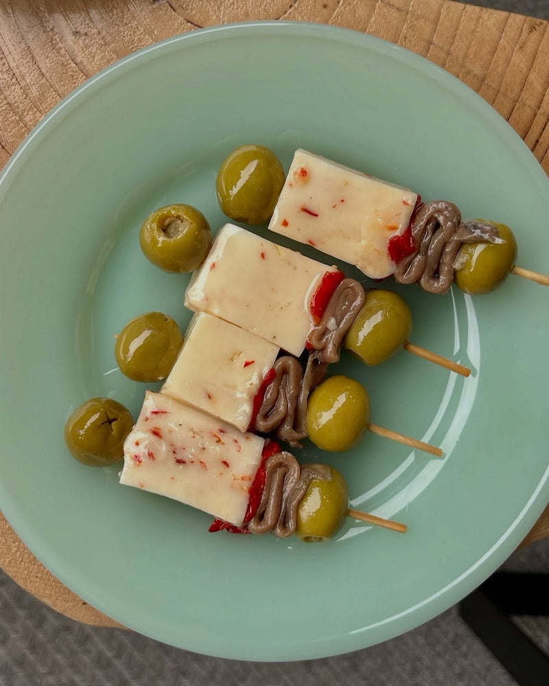 A selection of triple-cream Brie, aged Comté, and Roquefort. Pair with thin slices of rosette de Lyon saucisson, cornichons, and a generous heap of fresh grapes.