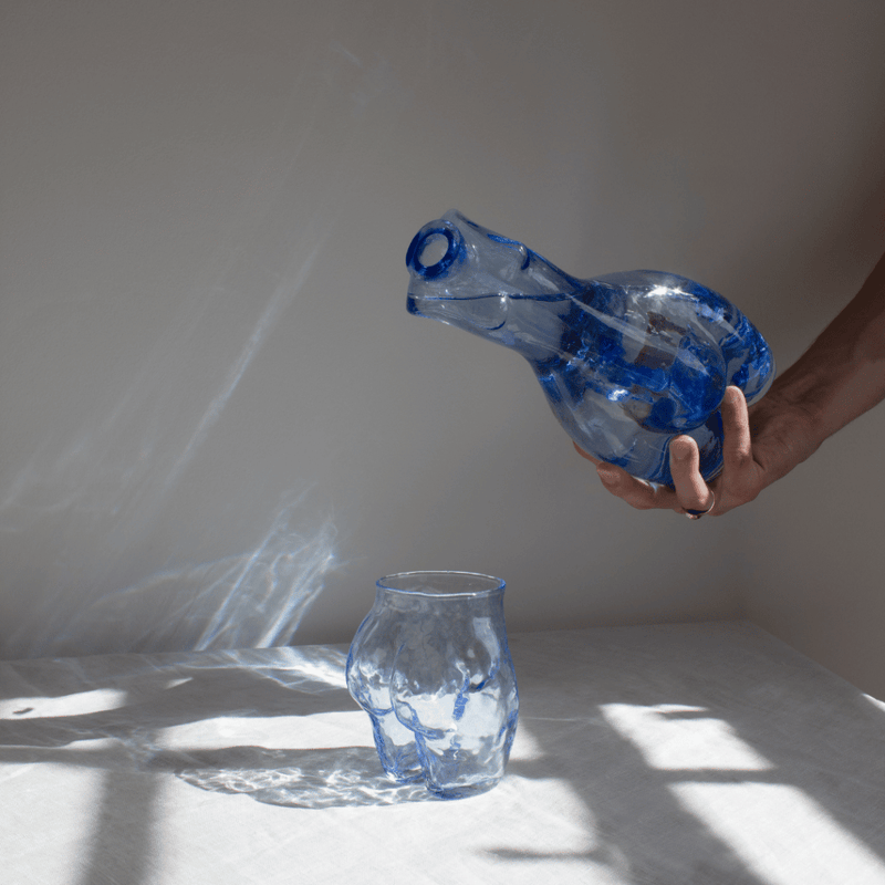 A bold conversation piece made in an exaggerated figure form. Expertly hand-blown and crafted in Portugal. These carafes have a deliciously mischievous appeal that makes them perfect for your dining table.