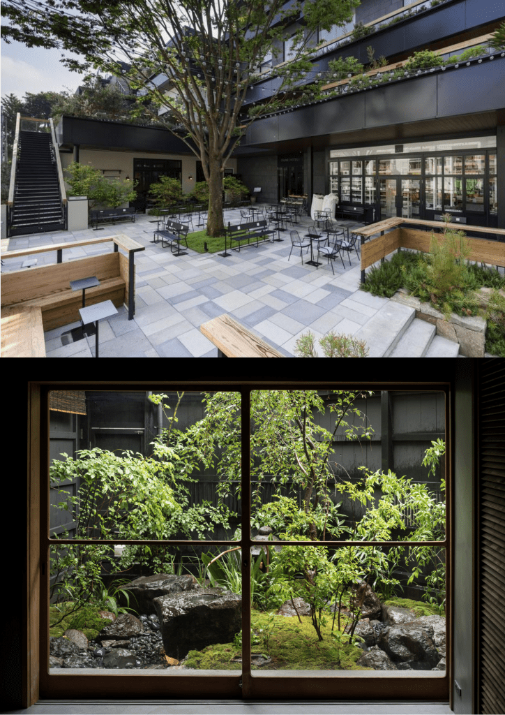There are lots of elements in TRUNK(HOTEL) full of special emotion for me but to mention only one, I would say the Zelkova tree in the centre of the public terrace. Usually, hotels prefer to display evergreen trees but Zelkova is a deciduous tree. They require frequent sweepings to remove the fallen leaves and during wintertime, their naked silhouettes increase the feeling of coldness around. Nevertheless, as it is the symbol of Shibuya, we stuck to our decision to plant it. Actually, 3 years before the opening I launched this Zelkova project with my teammates and we selected that one among 100 candidate trees. The transport and transplantation were challenging but I will forever remember the emotion and excitement we felt when it was done. It dresses up in different colours following the seasonality, showing a different appearance and I think it amazingly expresses the 4 seasons of Japan. It keeps growing in a very wealthy way and I guess it is always watching over the hotel.