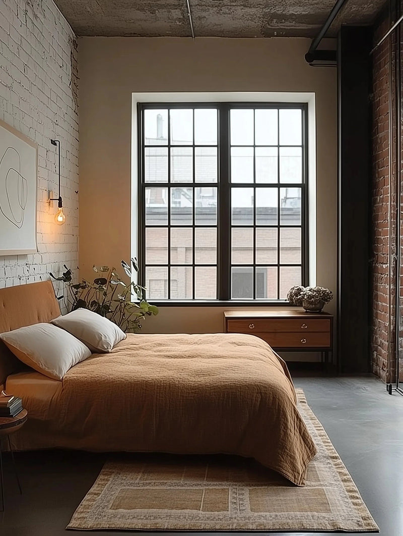 Exposed brick or concrete walls are hallmarks of industrial design, but if you don’t have them, faux brick wallpaper or concrete-effect paint can achieve the same raw aesthetic. Open layouts are key—use shelving or furniture to define spaces without disrupting flow or light.