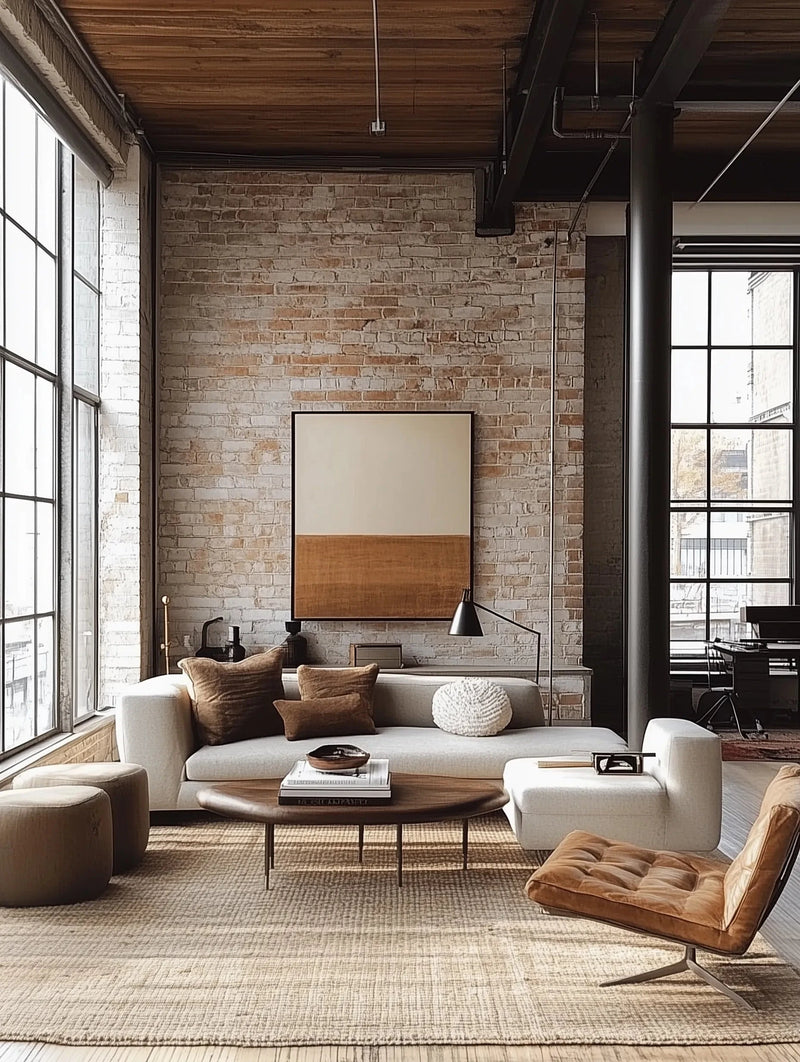 While neutral tones define industrial style, subtle pops of rust, mustard, or teal can introduce personality without overpowering the space. Use them sparingly through accessories, textiles, or statement pieces.