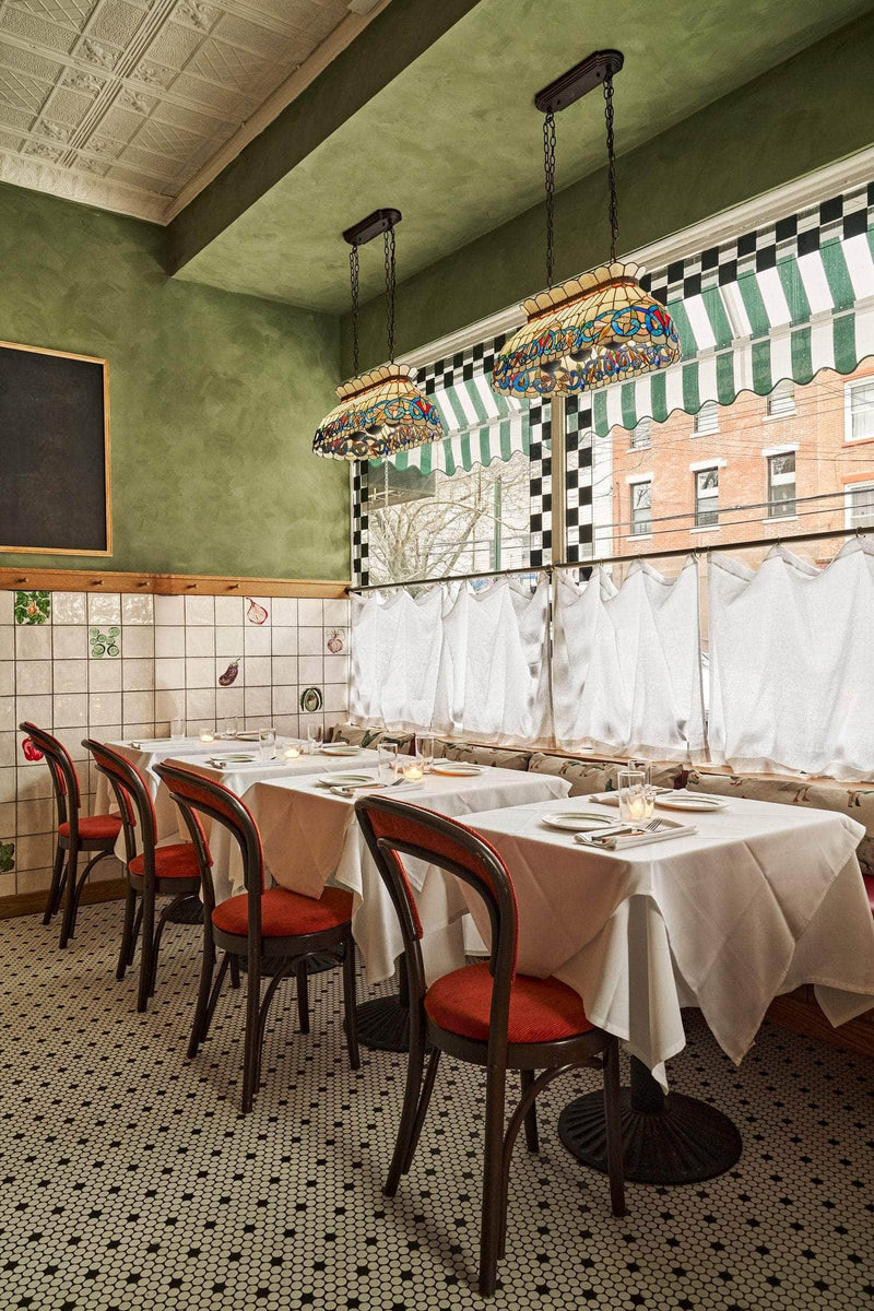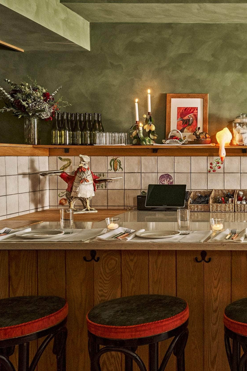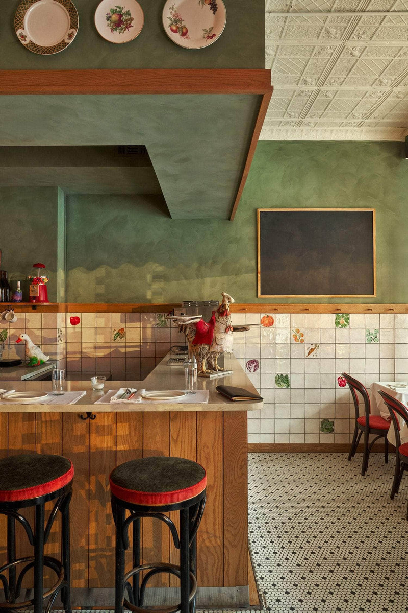 Apply NowInspired by vintage still life artwork shared by the restaurant’s owner, the space was carefully curated to evoke a nostalgic, homey atmosphere, drawing from ’90s and early 2000s kitchen aesthetics. From thrifted decorative plates and frames to fruit- and vegetable-themed ceramics, every detail was handpicked to create a sense of warmth and familiarity. The design process was a balance between functionality and storytelling, ensuring that materials like red oak shiplap provided durability while elements like wallpaper and limewash added character without compromising practicality.