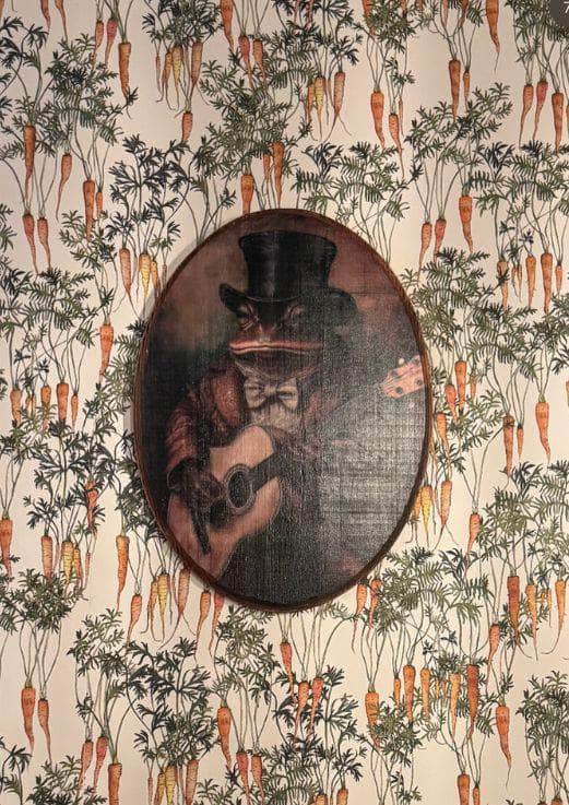 A standout feature of the space is the Bertioli wallpaper, which became the defining design element of what is now affectionately known as “The Carrot Room.”