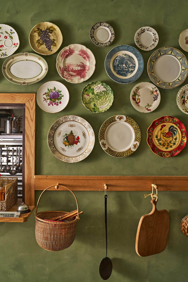 "We knew we wanted to use a lot of vegetable. The wallpaper felt like a great way to bring in this motif but in a more sophisticated way to balance out the silly paintings and ceramics."