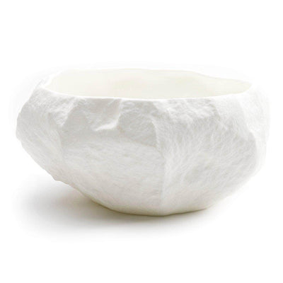 A collection of fine bone china tableware slip-cast from plaster models carved by hand, with glazed interior for functionality and raw exterior reflecting the modest surface texture of the plaster original. The process of slip-casting begins with the creation of a three-dimensional model of the design known as a master by a professional model-maker, from which the production mould is cast. Crockery bypasses this process by placing the responsibility of both designer and model-maker in the hands of Max Lamb. Using the tools of a stone mason Max chips and carves a solid block of plaster to make a series of tableware, the design of each formed quite simply out of their own making.