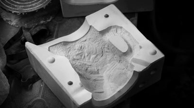 1882 Ltd.’s interpretation of black basalt, Crockery is a collection of fine bone china tableware slip-cast from plaster models carved by hand, with glazed interior for functionality and raw exterior reflecting the modest surface texture of the plaster original. Using the tools of a stonemason Lamb chips and carves a solid block of plaster to make a series of tableware, the design of each formed quite simply out of their own making.