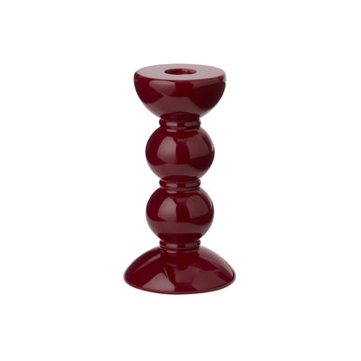 An Addison Ross exclusive design, this medium dark cherry red lacquered bobbin shaped candlestick is made from sustainably sourced rubber wood, finished with 8 coats of high gloss lacquer hand polished between each coat. Suitable for standard sized dinner candles. When using regular candles, ensure they are not burned below 2" to prevent damage to the candlestick.