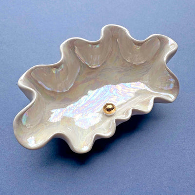 Porcelain Clam Shell Pinch Pot - Mother of Pearl