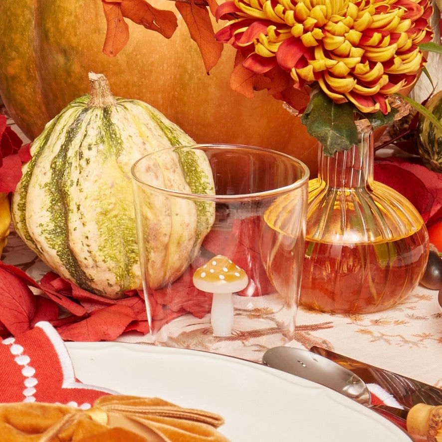 Building on the success of the beloved red shroom glasses, the’re excited to introduce the orange edition of hand blown mushroom glasses.