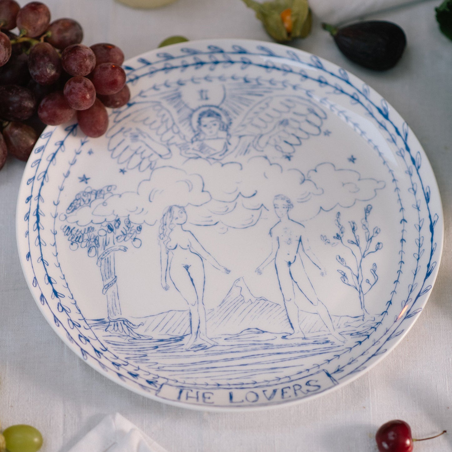 Lend a whimsical touch to your tablescape with this silk screen-printed dinner plate from Josephine Dessine. Blending tradition with a sense of humour, Josephine Dessine’s Tarot collection is characterised by a series of playful screen-printed designs based on the original Raider Waite Tarot Deck. Crafted from porcelain, each plate in the collection is unique and finished with a lead-free glaze. Use as a decorative piece or collect a set to create a personalised dining arrangement.