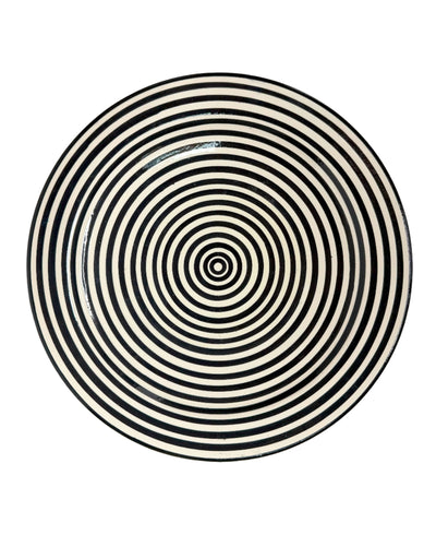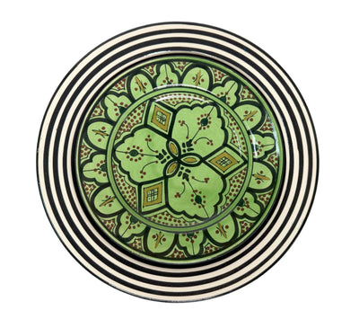 Hand-crafted and hand-painted in Safi, Morocco, this 12" plate offers a contemporary twist on classic Moroccan design. Ideal for mixing with colorful dinnerware, it creates an eclectic, layered table setting.We recommend hand washing to preserve its finish.