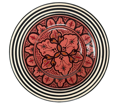 Hand-crafted and hand-painted in Safi, Morocco, this plate embodies timeless Moroccan design. Measuring 8 ½" in diameter, it pairs beautifully with our black-and-white pieces or colorful dinnerware to create an eclectic, layered table setting.We recommend hand washing to preserve its finish.