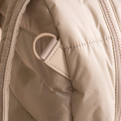 Meet the new Baby Changing Backpack in Oyster – a stylish, sustainable, and ultra-functional changing bag backpack designed for parenting adventures. Made from recycled, water-resistant materials with a puffy quilted finish. The perfect choice for parents who want a changing bag will last from newborn days to toddler travels and beyond.