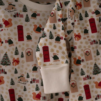 Snuggle your little one in this cosy Festive Forest Christmas Sleepsuit, crafted from the softest 100% organic cotton jersey. Featuring a magical woodland print, this unique design captures our favourite festive animals – bunnies, squirrels, and more – as they sled, decorate the tree, and deliver presents, bringing the joy of Christmas to bedtime.