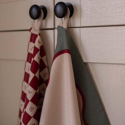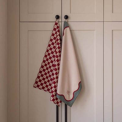 Add a festive touch to your kitchen with this Set of 2 Organic Cotton Christmas Tea Towels, crafted from 100% organic cotton. Designed with a playful checkerboard and scallop edge, and a delicate embroidered bow, these tea towels are as stylish as they are practical. Soft, absorbent, and finished with a hanging loop, they’re made to be used and loved year after year.