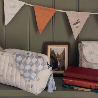 The organic cotton quilted wash bag comes in our unique prints with a stylish tassel. A beautifully designed, practical pouch for parent or baby to store your toiletries, make up, and more or nappies and creams. It also has a handy elasticised pocket inside. The product that is for parent and baby and has an infinite number of uses.