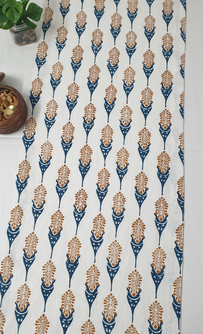Bahaar Hand Printed Table Runner - Mustard & Blue