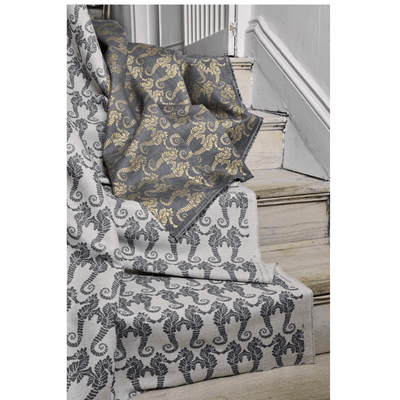 The symbol of strength, power and protection, this pretty repeat of kissing couples is available in gold on charcoal or gold on natural to compliment our Seahorse wallpapers.