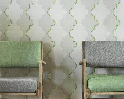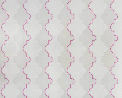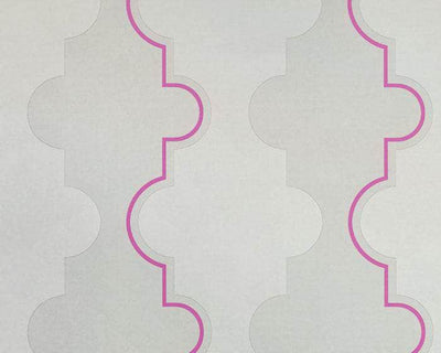 This fabulous large scale geometric stripe features a soft stone jigsaw print punctuated with a pop of colour. Available in bright pink or green on stone.