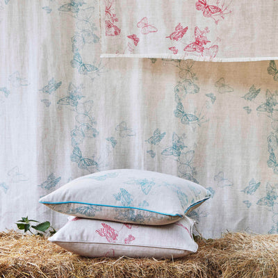 Butterflies Fabric. A kaleidoscope of butterflies, printed on a natural un-dyed linen cotton.