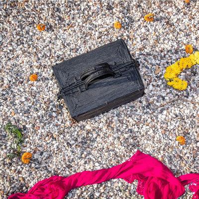 Its black colour is entirely natural and a result of the use of rare fibres that are found at the base of the atta grass plant. Wipe gently with a clean, dry cloth.