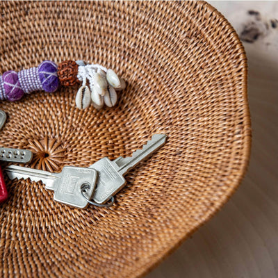 This raised wavy handwoven bowl is suitable for fruit, keys and knick-knacks. It was handcrafted by a community of skilled artisans in Bali using locally sourced atta grass. Atta grass is appreciated for its durability, sustainability and water resistance. View the entire atta grass tableware collection here.