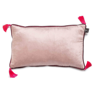 Silver Velvet Rectangular Cushion with Pink Tassels