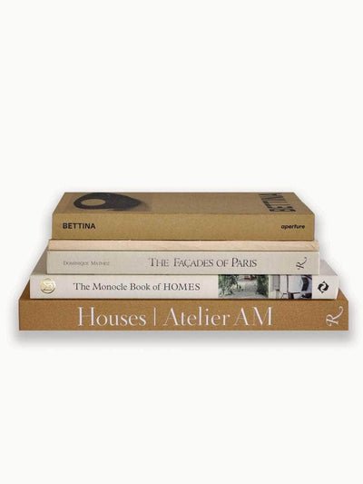 With a complimentary color palette that can fit effortlessly into any space, this book stack brings to life an array of art forms from abstractionism to drawing. A consistent theme of beautiful interiors is present throughout each title.