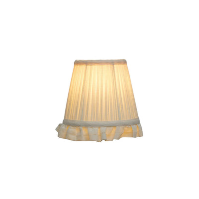 A very pretty frilled lampshade with fine lines of delicate embroidery running vertically down the folds of cotton before swapping direction along its ruffled trim. Coloured in Daisy, its warm pale cream tones make it easy to bring into any and every colour palette.Being lined in white organic cotton adds a pleasing weight and means the light doesn’t come through too harshly. The embroidery allows the slightest shafts of light through too giving off a balanced, ambient glow.