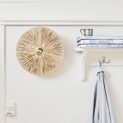The Dott wall lamp is a round raffia lamp, and is perfect for lightening up an area that needs a cozy glow, or making a corner look more open. The lamp is at the same time decorative, and the raffia gives warmth to your decoration. The small dott lamps are also perfect as bedside lightening, in the hallway or for a kids room.