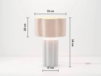 Soften your interior with the natural elements of ceramic and linen. The sculptural ceramic base complements the flower-shaped linen shade. Standing tall at 54cm, this table lamp will make a statement on a sideboard or create warmth in a hallway or bedroom.