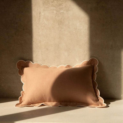 The Blushed Pink & White Scalloped Linen Rectangular Cushion