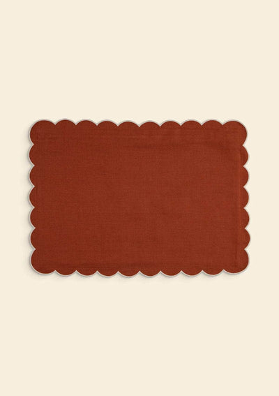 The Red ochre & White Scalloped Linen Rectangular Cushion