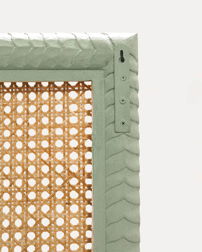 The natural cane finish has a light and airy feel whilst the three soft colourways of the carved frame will help to ground the scheme without dominating the room.