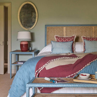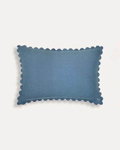 This popular cushion is now part of Birdie Fortescue's Signature Collection. Block printed by hand in India on 100% linen, this timeless cushion is finished with a ricrac trim in blue and backed with linen.