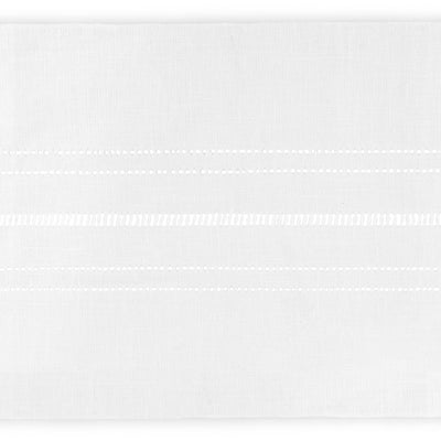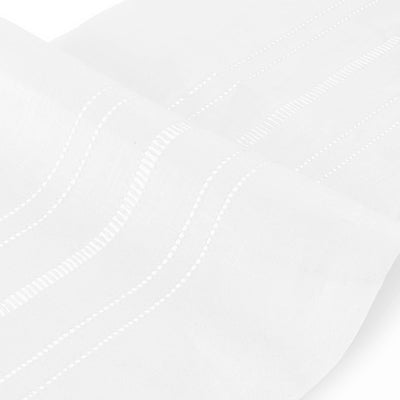 Volga's Empire lampshade with ruffle detail is handmade in England by local artisans using our Drawn Thread Lambrequin Ladder & Hemstitch Rows linen. These lampshades are made to order and feature a silk lining.