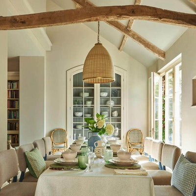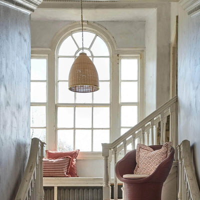 Generous in size, the statement pendant shade can be styled individually or also work very well when styled in pairs down the centre of a dining table or kitchen island. The natural materials used create a soft and warm glow, the perfect addition to any home.