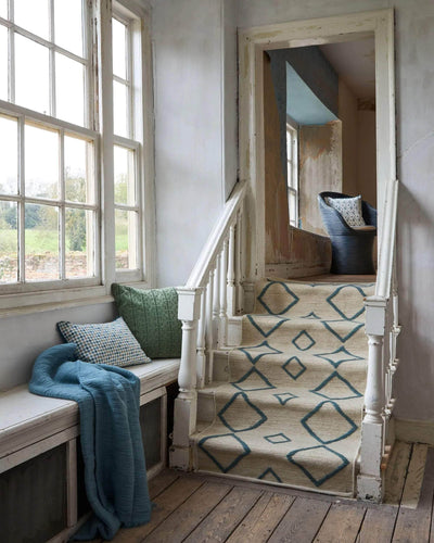 The Rhombus Rug makes a bold statement in any interior and works equally well in both traditional and more contemporary settings. Hand woven with embroidered jute detail, the design adds a luxurious quality that is perfect for bedrooms and sitting rooms alike.