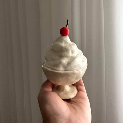 This fun, ice- cream -shaped ceramic candleholder is the perfect addition to any home. The holder is also water-resistant and can be used with candles or flowers.