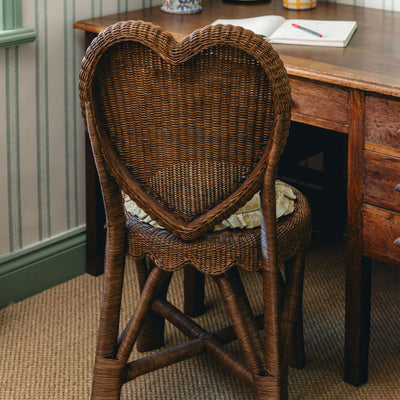 Featuring a heart-shaped back and scalloped seat edges, this unique rattan chair adds a playfulness to any space. We love it in a hallway, by the front door, or grouped together around the dining table for a really beautiful seating arrangement. Designed by Hastshilp in the UK and ethically handcrafted in India by independent artisans.