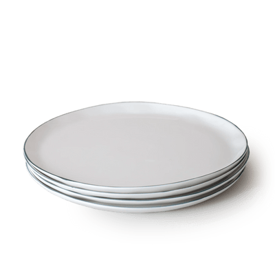 A set of four of our fine bone china dinner plates, our largest plate. Big enough for all expert culinary creations, or even to showcase a cake or a festive smattering of cheese. With a shallow dimpled lip to keep gravy at bay.