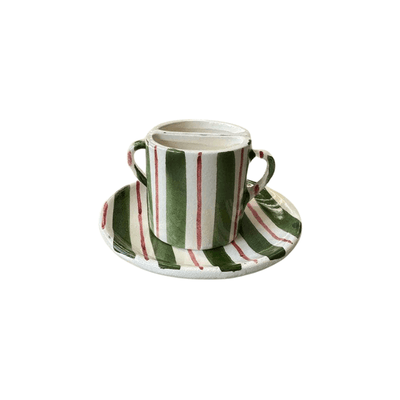At first glance, it seems like a single cup, but in reality, it's two cups cleverly disguised as one. With hand-painted artistry and a saucer measuring 12 cm, these cups are perfect for intimate coffee moments.