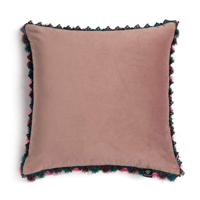 Velvet conservatory print mauve cushion with multi-coloured tassels