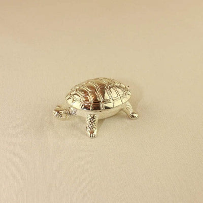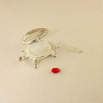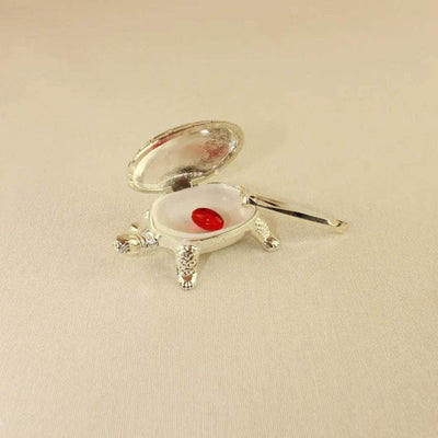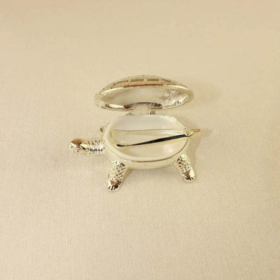 Vintage turtle-shaped pill box, made of alpaca. Includes internal plastic compartment and includes miniature clamp.