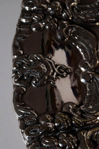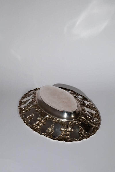 Elevate your table setting with this stunning vintage oval tray, a true gem for your collection. Crafted from silver-plated metal, it boasts an exquisite embossed edge featuring intricate floral and leaf designs.