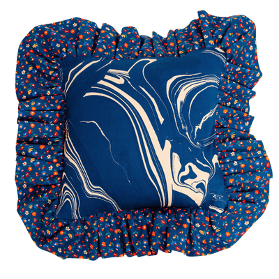 Frilly Fancy is the decadent cushion of your dreams! A clash of an ultramarine marble print with a ditsy floral frill makes this cushion a special addition to your home. Prints are always designed in house by Maison Lisette.
