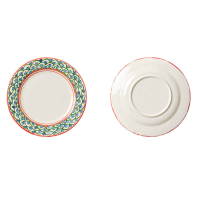 The dinner plate with traditional designs from western Spain, painted with the “mosca” style or the José style.