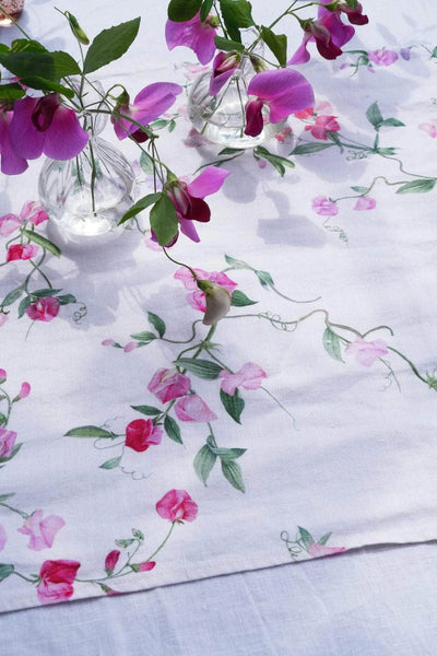 Introducing The Summer Climber Collection, inspired by the blooms we find climbing from pots and up our garden walls. Sweet peas trail across the linens bringing colour and whimsy to your summer tables.